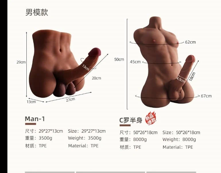 בובת מין של גבר - חצי גוף, לנשים וגברים.
