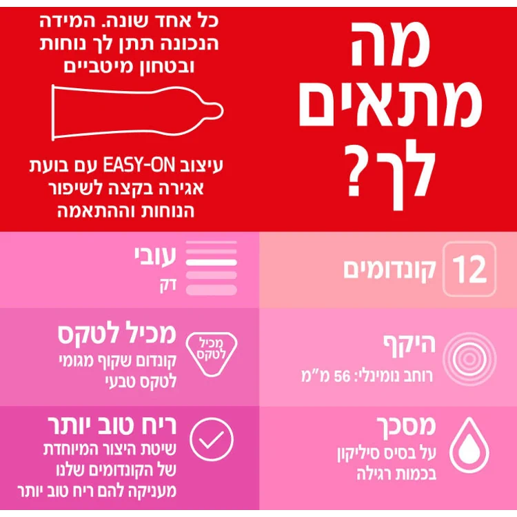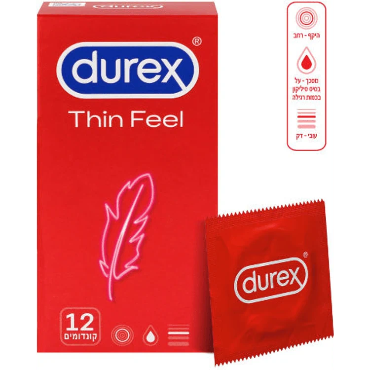 - נסו את קונדומי * Durex Thin Feel כדי ליהנות מתחושה נעימה וחלקה מבלי להתפשר על בטיחות והגנה.